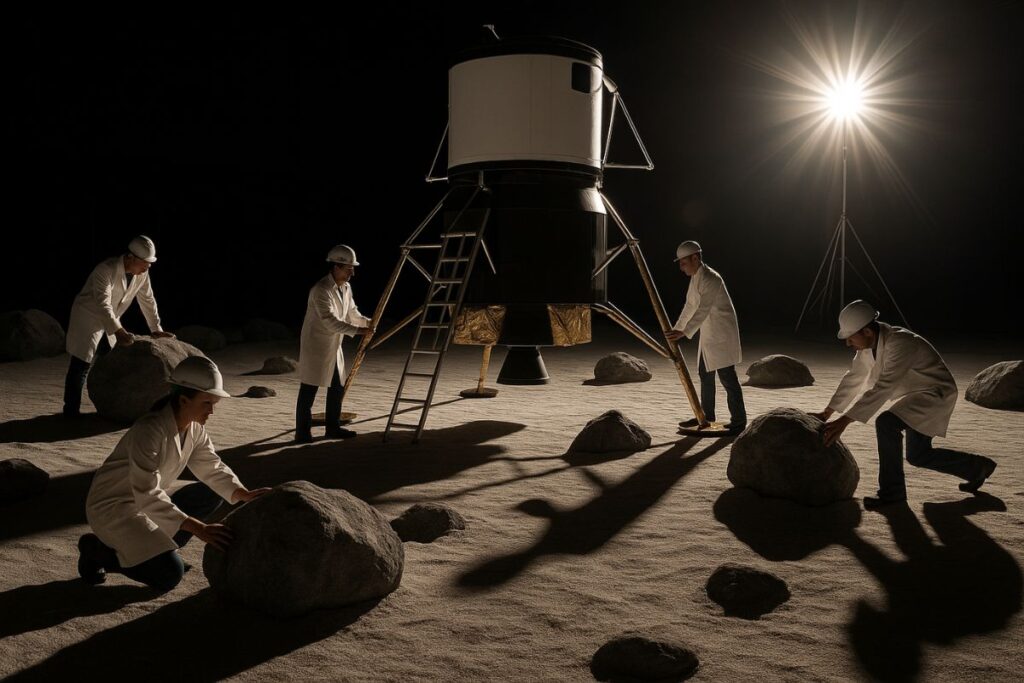 Utilizando luces de alta intensidad y maquetas del módulo de aterrizaje y del terreno lunar, se evalúa cómo las sombras impactarán la visión.